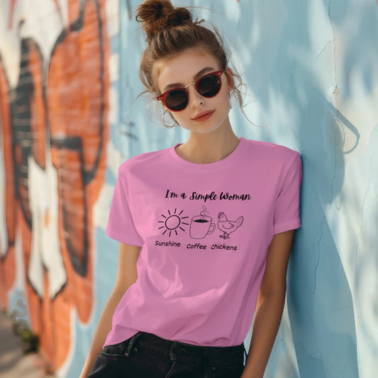"I'm a Simple Woman" T shirt All I need is Sunshine, Coffee and Chickens