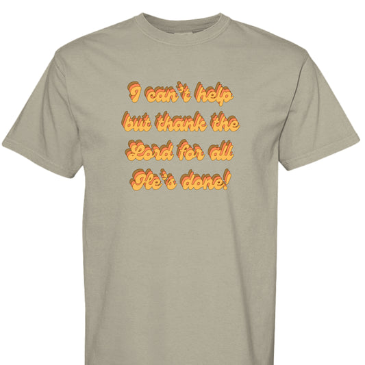 "I can't help but thank the LORD for all He's done" song lyrics retro design