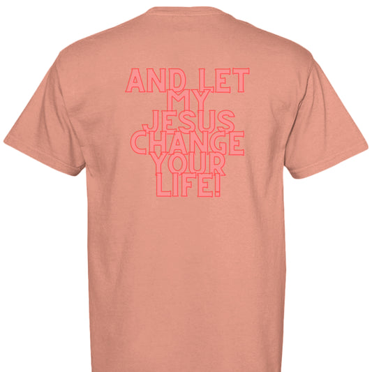 "Let me tell you 'bout my Jesus" "And let my Jesus change your life!" song lyric graphic tee