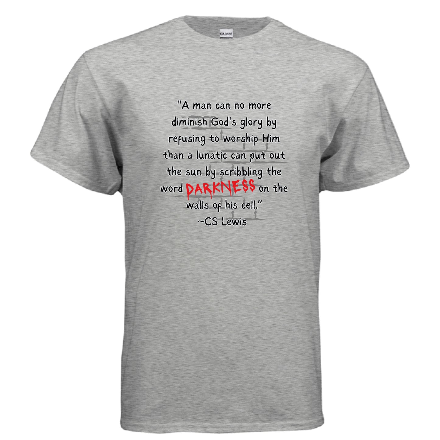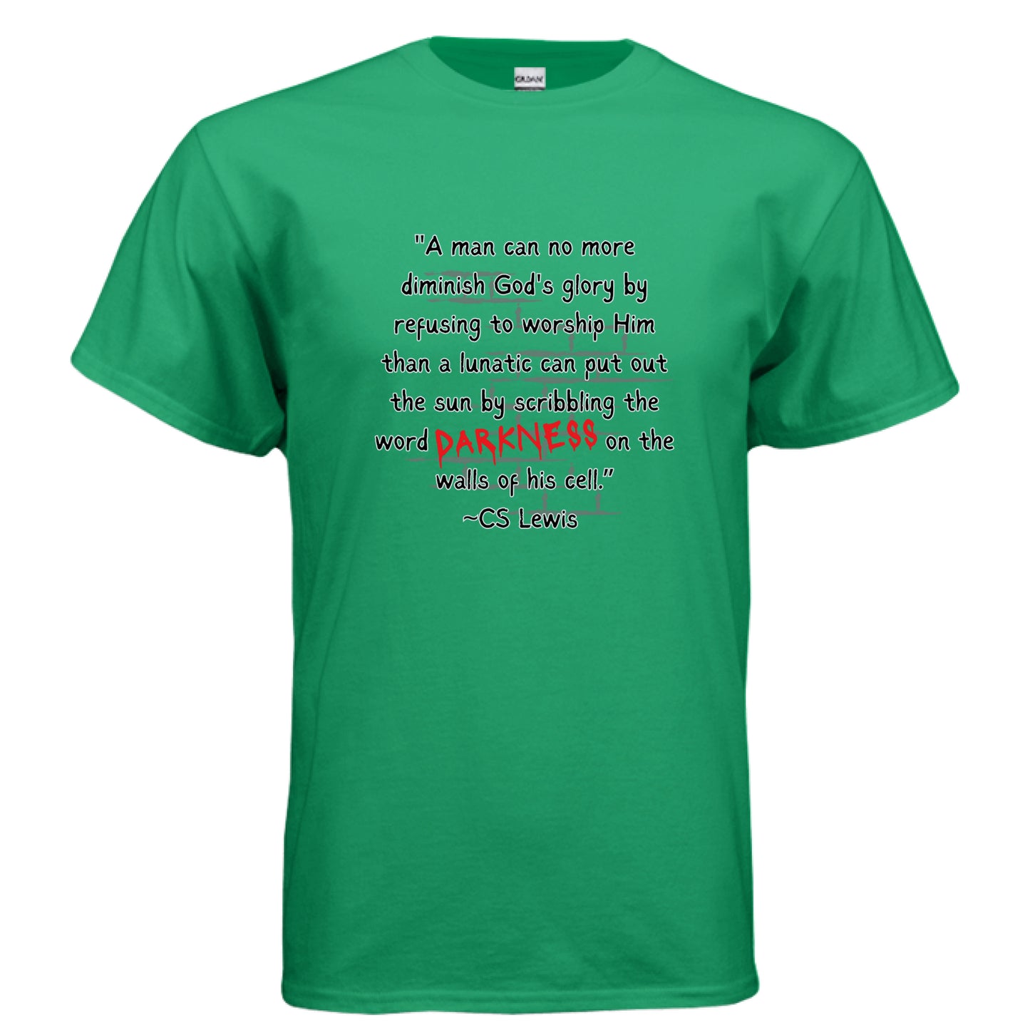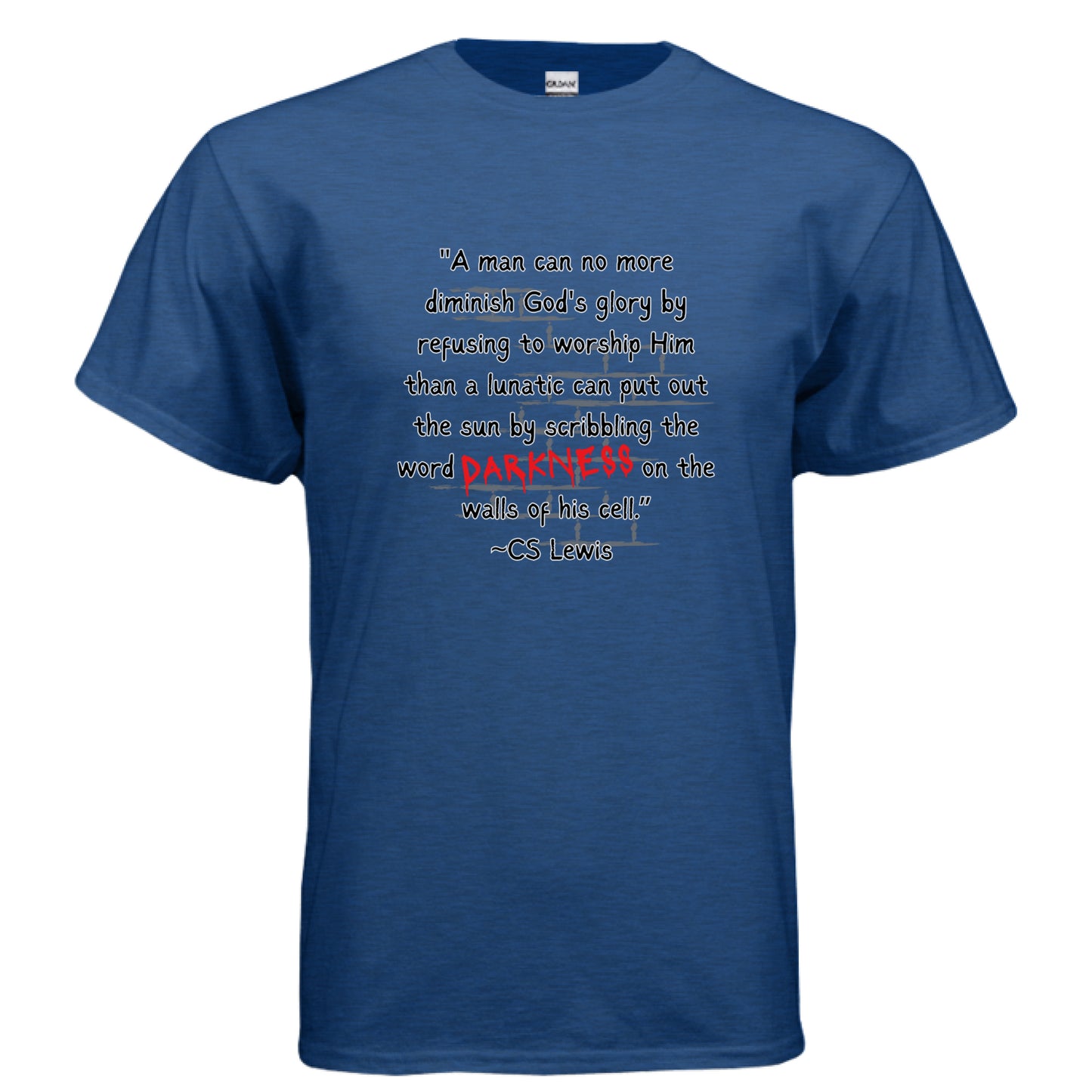 This refined t-shirt features a profound C.S. Lewis quote alongside scripture reference Romans 1:20, reflecting on the unchangeable glory of God.