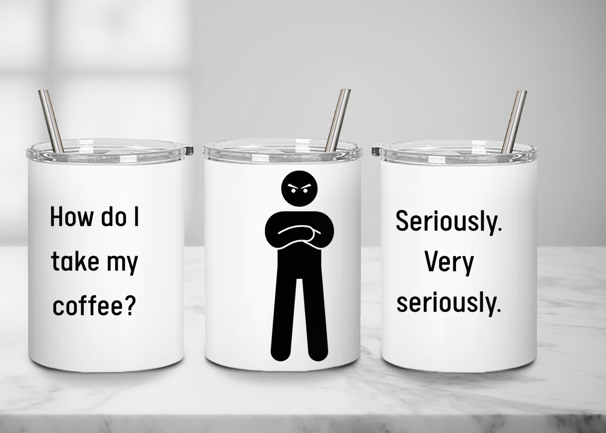 "How do I take my coffee? Seriously, very seriously" - Handle-less Mug- 10 oz Stainless Tumbler Coffee