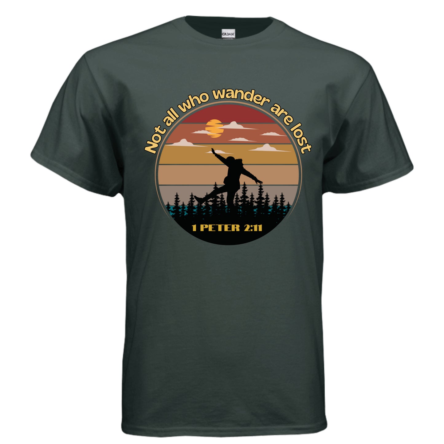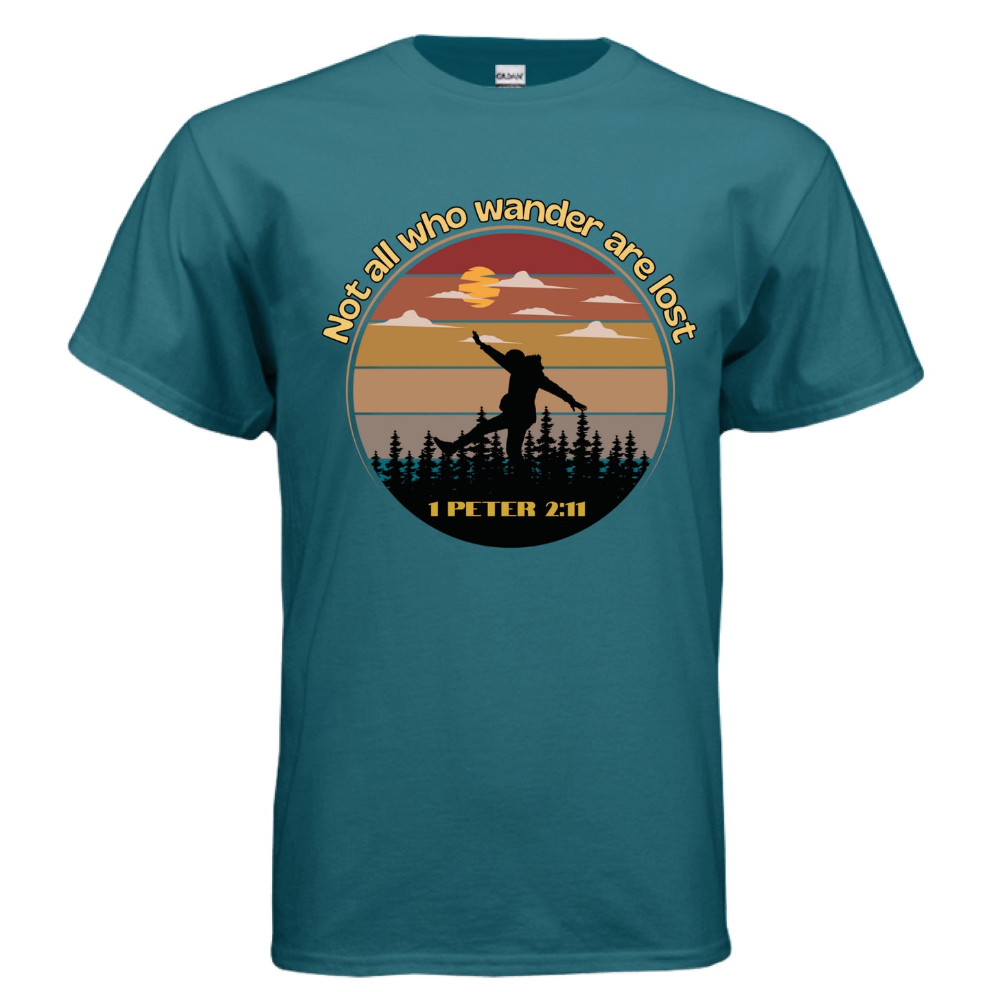 "Not all who wander are lost" t-shirt tee unisex 1 Peter 2:11